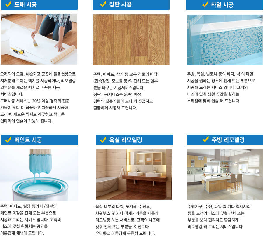 전문적이고 합리적인 가격 저희의 수많은 경험이 쌓인 최고의 시공팀이 여러분을 찾아갑니다.
